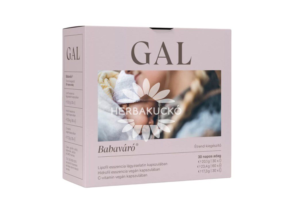 A GAL Babaváró® egy komplex étrend-kiegészítő, amelyet kifejezetten gyermekvállalást tervező, várandós és szoptató nők számára állítottak össze. A termék vitaminokat, ásványi anyagokat és nyomelemeket tartalmaz biztonságos, tudományosan megalapozott formákban és dózisokban. A folátot a szervezet számára jól hasznosuló metil-folát formában tartalmazza, valamint növényi kivonatokkal is kiegészül. GMO-, glutén-, szója-, tej- és laktózmentes, nem tartalmaz mesterséges adalékanyagokat.
