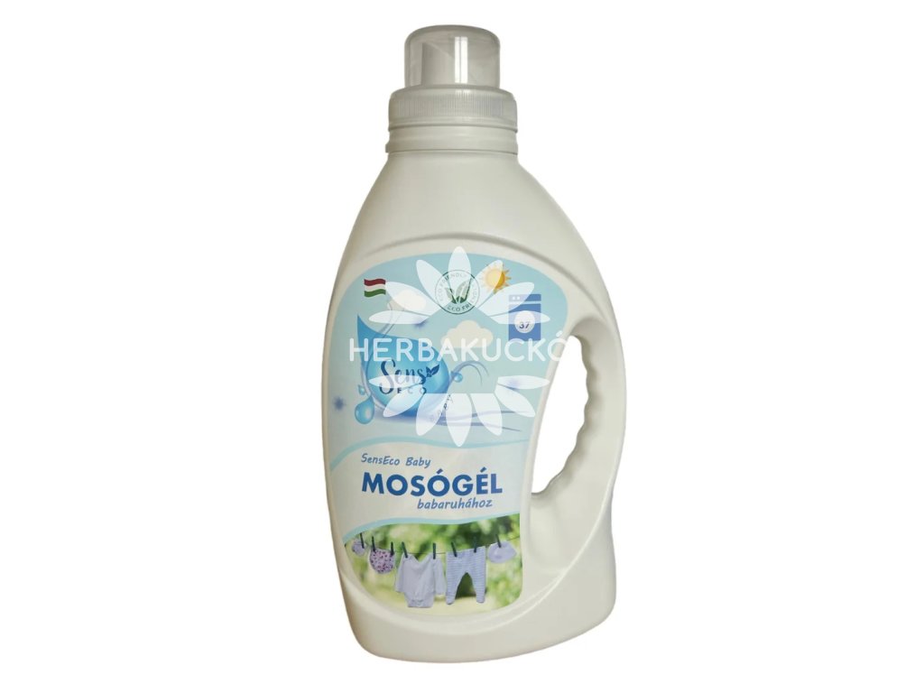 A SensEco Baby mosógél kifejezetten bababőr-barát, ugyanakkor hatékonyan tisztít – gyöngéd formula, amely megőrzi a ruhák színét és rugalmasságát. A panthenol bőrnyugtató hatása mellett puhaságot biztosít; a szappanfű természetesen tisztít. A gél algycélból nem tartalmaz enzimet, klórt, parabént, szulfátot, foszfátot és optikai fehérítőt, valamint biztonságosan használható házi szennyvíztisztító mellett is. Alacsony és magas hőmérsékleten (30–90 °C) egyaránt hatásos.